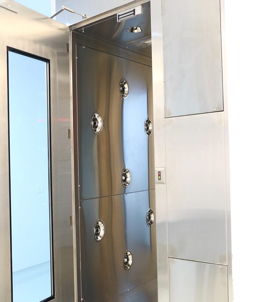 Designed as self-contained air chambers installed at cleanroom entrances, our air showers ensure that personnel are thoroughly cleansed of contaminants. As individuals pass through, high-velocity HEPA-filtered air jets—reaching speeds of up to 6000 FPM—dislodge and remove particulate matter, significantly reducing the risk of contamination entering the cleanroom.