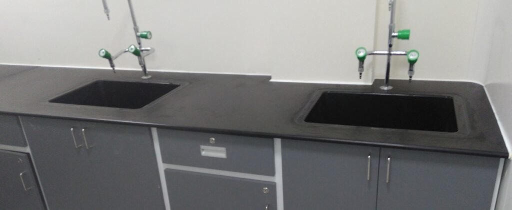 Our Sink Tables are manufactured in a variety of designs and shapes, custom-made to suit customer requirements. The construction material is epoxy-coated galvanized iron or SS304 of suitable thickness, ensuring durability, strength, and long service life. The systems are designed to be fitted with pedestal structures and can be configured as per client specifications. The units are available with PP or SS as material of construction (MOC) and are equipped with swan neck water taps in SS or brass powder-coated finish, along with a water trap for efficient drainage and functionality.